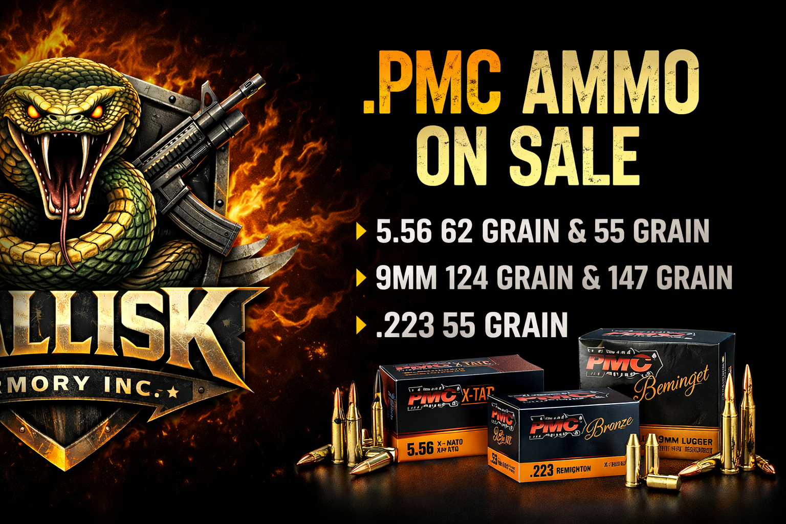 Quick view View Options PMC Bronze 223 Ammo 55 Grain Full Metal Jacket MSRP: Was: Now: $9.00 - $450.00 PMC